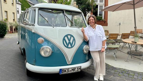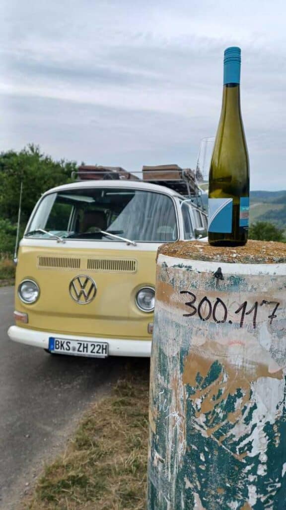 Dass das erste Mal – ein ebenso wilder Ritt wie mein Jahr 2025 – in einem Oldtimer durch die Mosellagen allerdings so witzig und kurzweilig sein würde, das hätte ich nicht gedacht. Um so schöner war der kleine Tagesausflug mit offenen Fenstern und laut aufgedrehtem Kassettenrecorder im VW-Bulli (T-Modell). Ach ja und immer mit dem Weinglas in der Hand. Zwei Winzer fuhren uns zu 11 Weinlagen, bei denen wir anhielten und natürlich den passenden Stoff probierten. Sie erzählten uns aus ihrem oft auch körperlich beschwerlichen Arbeitsalltag in den Steilhängen und ich konnte interessanterweise viele Parallelen zu meinem entdecken. In diesem Blogbeitrag beschrieb ich meine Liebe zur Arbeit mit Werten und weshalb ich sie nicht mehr loswerde.