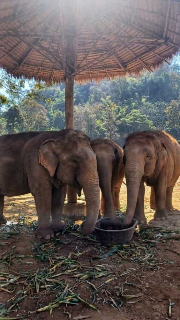 Zurück zur abgefahrenen Tempelstadt Ayutthaya aus dem Jahre 1324 . Bei der Idee mit den Fahrrädern haben wir gar nicht bedacht, wie herausfordernd der Linksverkehr sein kann. Erst recht, wenn Du plötzlich eine Horde Elefanten hast, die mal eben durch die weitläufigen und teilweise vom Wildwuchs überlappten Ruinenfelder Deinen Weg kreuzen. Aber für genau solche Situationen habe ich schon in der Vorschule gelernt: Rechts vor links gilt immer!